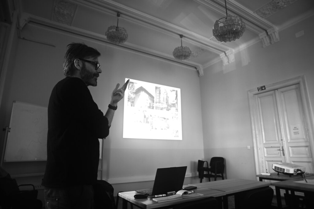 Péterffy Miklós, az Ybl Miklós Építéstudományi Kar frissen kinevezett kollégája tartott bemutatkozó előadást a Doktori Iskola szerda délutáni Kutatóműhely alkalmán. A választott téma már előrevetíti a Doktori Iskola hallgatói számára a tavaszi szemeszter végére időzített újabb – immár lassan hagyományosnak tekinthető – kirándulását, amelyet ezúttal Románia fővárosába szerveznek.
